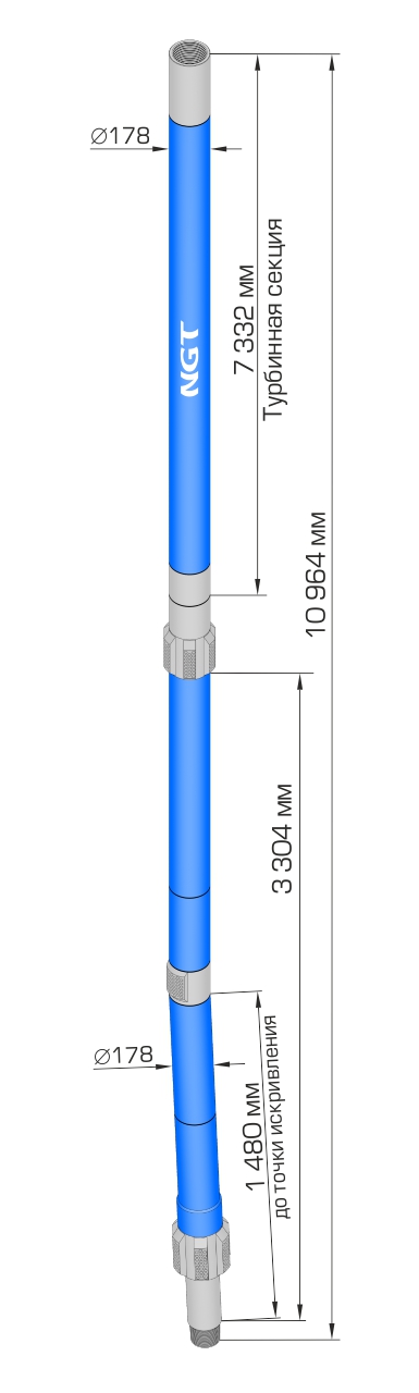 Турбобур TBS1-178.NGT.M1 и TBS1-178.NGT.M2 — это новые универсальные турбобуры-отклонители с ультра-коротким плечом до точки перекоса осей.